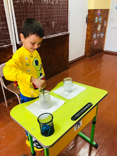 Дітки проводили експеримент "Чому це так?". У півлітрову банку з водою поклали яйце. Воно потонуло, бо важке. В іншу банку додали солі, розмішали і знову опустили туди яйце. Воно випливло на поверхню води. Ми дійшли висновку: щільність води змінилася, тому яйце виштовхнуло назовні.Отже, чим більше солі, тим більша щільність води і тим складніше потонути.